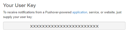 URL part:pushover://:token@user/User - User Key (Required)